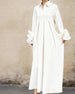 SPECIFICATIONS Style: Casual Material: Cotton Blends Dress Type: Shirt Dress Length: Maxi Neckline: Shirt Collar Pattern Type: Solid Color Sleeve Type: Petal Sleeve Sleeve Length: Long Sleeve Details: Shirred Fit Type: Regular Season: Spring,Fall Occasion: Daily Package Includes: 1 x Dress SIZE TABLE Size Bust Length CM INCH CM INCH S...