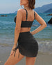 SPECIFICATIONS Style: Vacation Material: 82% Chinlon,18% Spandex Occasion: Vacation Neckline: V neck_V Pattern Type: Solid Color Sleeve Length: Sleeveless Top Type: Bikini Bra Type: Triangle Bottom Type: Skirts Fit Type: Skinny Details: Backless,Lace Up,Shirred,Drawstring Package Includes: 1 x Bikini SIZE TABLE Size Bust Waist Hip Under bust...