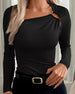 SPECIFICATIONS Top Type: Tops Style: Chic Material: Knit Occasion: Daily Neckline: Slant Collar Pattern Type: Solid Color Sleeve Type: Regular sleeve Sleeve Length: Long Sleeve Fit Type: Skinny Season: Fall,Winter Details: Buckle Package Includes: 1 x Top SIZE TABLE Size Bust Length CM INCH CM INCH S 92 36.22 65 25.59 M 96 37.8 66.5...