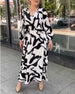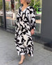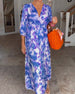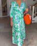 SPECIFICATIONS Style: Casual, Vacation Material: Cotton Blends Dress Type: A-Line Dress Length: Maxi Neckline: V neck_V Pattern Type: Print Sleeve Type: Lantern Sleeve Sleeve Length: 3/4 Sleeve Details: Shirred Fit Type: Regular Season: Spring, Summer, Fall Occasion: Daily, Vacation Package Includes: 1 x Dress SIZE TABLE Size B...