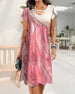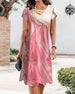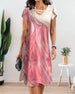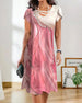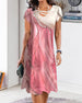 SPECIFICATIONS Style: Elegant Material: 3% Spandex,97% Polyester Dress Type: A-Line Dress Length: Knee Length Neckline: V neck_V Pattern Type: Print Sleeve Type: Regular sleeve Sleeve Length: Short Sleeve Details: Patchwork Fit Type: Regular Season: Spring, Summer, Fall Occasion: Daily Package Includes: 1 x Dress (With Belt) SIZE TABLE ...