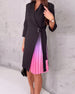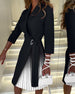 SPECIFICATIONS Style: Chic Material: Cotton Blends Dress Type: A-Line Dress Length: Knee Length Neckline: Lapel Pattern Type: Gradient Sleeve Type: Regular sleeve Sleeve Length: Nine Points Sleeve Details: Patchwork,Lace Up,Shirred Fit Type: Regular Season: Spring,Fall Occasion: Daily,Work Package Includes: 1 x Dress SIZE TABLE Size ...