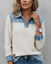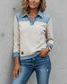 Fashionable Lapel Color Block Spliced Sweatshirt