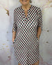 SPECIFICATIONS Style: Elegant,Business Material: Cotton Blends Dress Type: Shift dress Dress Length: Knee Length Neckline: Round Neck Pattern Type: Geometric Print Sleeve Type: Regular sleeve Sleeve Length: Short Sleeve Details: Pocket Fit Type: Regular Season: Spring,Summer,Fall Occasion: Daily,Work Package Includes: 1 x Dress SIZE TABLE ...
