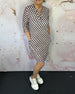 SPECIFICATIONS Style: Casual Material: Cotton Blends Dress Type: A-Line Dress Length: Midi Neckline: Lapel Pattern Type: Geometric Print, Print Sleeve Type: Regular sleeve Sleeve Length: 3/4 Sleeve Fit Type: Regular Season: Spring, Summer, Fall Occasion: Daily Package Includes: 1 x Dress SIZE TABLE Size Bust Length CM INCH CM...