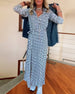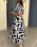 SPECIFICATIONS Style: Casual Material: Cotton Blends Dress Type: A-Line Dress Length: Maxi Neckline: Lapel Pattern Type: Geometric Print Sleeve Type: Regular sleeve Sleeve Length: Long Sleeve Details: Lace Up,Slit Fit Type: Regular Season: Spring,Summer Occasion: Daily Package Includes: 1 x Dress SIZE TABLE Size Bust Length CM INCH CM I...