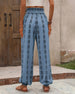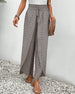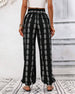 SPECIFICATIONS Style: Elegant Material: 5% Spandex, 95% Polyester Pattern Type: Geometric Print Pants Type: Wide Leg Pants Length: Long Waist Type: High Waist Fit Type: Regular Season: Spring, Summer, Fall Details: Drawstring Occasion: Daily Package Includes: 1 x Pants SIZE TABLE Size Waist Length CM INCH CM INCH S 67 26.3...