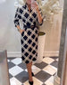 SPECIFICATIONS Style: Elegant Material: 95% polyester, 5% spandex Dress Type: A-Line Dress Length: Midi Neckline: Lapel Pattern Type: Geometric Print Sleeve Type: Regular sleeve Sleeve Length: Long Sleeve Details: Pocket, Buttons Fit Type: Regular Season: Spring, Fall, Winter Occasion: Daily Package Includes: 1 x Dress SIZE TABLE Size B...