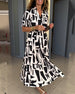 SPECIFICATIONS Style: Casual Material: Cotton Blends Dress Type: A-Line Dress Length: Maxi Neckline: V neck_V Pattern Type: Geometric Print, Print Sleeve Type: Regular sleeve Sleeve Length: Nine Points Sleeve Fit Type: Loose Season: Spring, Summer, Fall Occasion: Daily Package Includes: 1 x Dress SIZE TABLE Size Bust Length C...