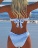 SPECIFICATIONS Style: Vacation Material: 15% Spandex,85% Polyester Occasion: Vacation Neckline: Halter Pattern Type: Striped Sleeve Length: Sleeveless Top Type: Bikini Bra Type: Wireless Bra Bottom Type: High Cut Fit Type: Regular Season: Spring,Summer Details: Backless,Lace Up,Bowknot Package Includes: 1 x Bikini SIZE TABLE Size Bust Waist ...