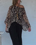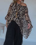 Irregular Bat Print Long-Sleeved Blouse
