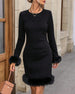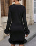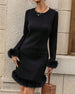 Knee-length furry sleeve dress