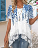 Irregular Faux Two-Piece Print Blouse