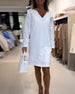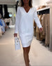 SPECIFICATIONS Style: Casual Material: Cotton Blends Dress Type: Shift dress Dress Length: Knee Length Neckline: V neck_V Pattern Type: Solid Color Sleeve Type: Regular sleeve Sleeve Length: Long Sleeve Fit Type: Regular Season: Spring, Fall, Winter Occasion: Daily Package Includes: 1 x Dress SIZE TABLE Size Bust Length CM INCH CM INC...