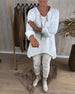SPECIFICATIONS Top Type: Tops Style: Casual Material: Cotton Blends Occasion: Daily Neckline: V neck_V Pattern Type: Solid Color Sleeve Type: Regular sleeve Sleeve Length: Long Sleeve Fit Type: Regular Season: Fall,Winter Details: Irregular Package Includes: 1 x Top SIZE TABLE Size Bust Length CM INCH CM INCH S 97 38.19 65 25.59...