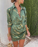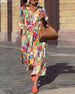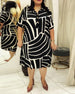 Lapel Fashion Half-Length Sleeve Printed Swing Dress
