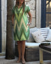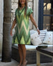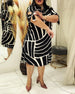 SPECIFICATIONS Style: Casual Material: 5% Spandex, 95% Polyester Dress Type: A-Line Dress Length: Knee Length Neckline: Lapel Pattern Type: Geometric Print Sleeve Type: Regular sleeve Sleeve Length: Short Sleeve Details: Shirred Fit Type: Regular Season: Spring, Summer Occasion: Daily Package Includes: 1 x Dress SIZE TABLE Size...