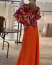 Lantern-Sleeve Sequined Leopard-Print Blouse