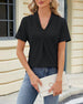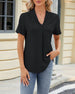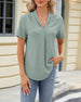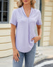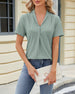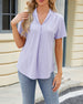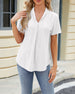 SPECIFICATIONS Top Type: Tops Style: Elegant, Business Material: Cotton Blends Occasion: Daily, Work Neckline: Lapel Pattern Type: Solid Color Sleeve Type: Regular sleeve Sleeve Length: Short Sleeve Fit Type: Regular Season: Spring, Summer, Fall Details: Hollow Out, Shirred Package Includes: 1 x Top SIZE TABLE Size Bust Leng...