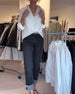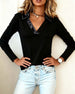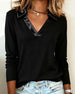 Lapel Satin Paneled Long Sleeve Top