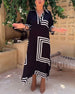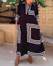 Lapel rectangular printed casual dress