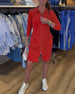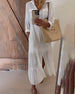 SPECIFICATIONS Style: Casual Material: Cotton Blends Dress Type: Tunic Dress Length: Knee Length Neckline: V neck_V,Lapel Pattern Type: Solid Color Sleeve Length: Short Sleeve Details: Shirred Fit Type: Regular Season: Spring,Summer Occasion: Daily Package Includes: 1 x Dress SIZE TABLE Size Bust Length CM INCH CM INCH S 97 38.19...