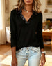 Lapel Solid Long-Sleeved Shirt And Lace Inner Set