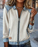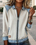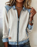 Lapel Zip-Up Denim Patchwork Coat
