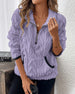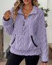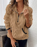 Lapel Zipper Front Fuzzy Sweatshirt