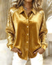 Lapel Shimmering Long-Sleeved Shirt