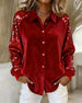Lapel Sequined Long-Sleeved Shirt