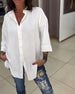 SPECIFICATIONS Top Type: Shirt Style: Casual, Business Material: Cotton Blends Occasion: Daily, Work Neckline: Lapel Pattern Type: Solid Color Sleeve Type: Dropped shoulder Sleeve Length: 3/4 Sleeve Fit Type: Regular Season: Spring, Summer, Fall Details: Buttons Package Includes: 1 x Shirt SIZE TABLE Size Bust Length CM INCH CM...