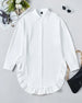 SPECIFICATIONS Top Type: Shirt Style: Casual Material: Cotton Blends Occasion: Daily Neckline: Lapel Pattern Type: Solid Color Sleeve Type: Regular sleeve Sleeve Length: Long Sleeve Fit Type: Regular Season: Spring, Summer, Fall Details: Ruffle Package Includes: 1 x Shirt SIZE TABLE Size Bust Length CM INCH CM INCH S 98 38....