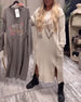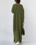 SPECIFICATIONS Style: Casual Material: Cotton, Knit Dress Type: Shift dress Dress Length: Maxi Neckline: V neck_V Pattern Type: Solid Color Sleeve Type: Dropped shoulder Sleeve Length: Long Sleeve Details: Slit Fit Type: Loose Season: Spring, Fall Occasion: Daily Package Includes: 1 x Dress SIZE TABLE Size Bust Length Sle...