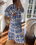 SPECIFICATIONS Style: Vacation Material: Cotton Blends Dress Type: A-Line Dress Length: Maxi Neckline: V neck_V Pattern Type: Print Sleeve Type: Regular sleeve Sleeve Length: Long Sleeve Details: Lace Up Fit Type: Loose Season: Spring,Summer Occasion: Vacation Package Includes: 1 x Dress SIZE TABLE Size Bust Length CM INCH CM INCH S 9...