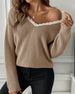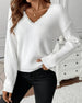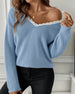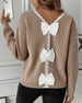 SPECIFICATIONS Category: Pullovers Style: Casual Material: Acrylic,Spandex,Polyester Neckline: V neck_V Pattern Type: Solid color Sleeve Type: Regular sleeve Sleeve Length: Long Sleeve Details: Bowknot Fit Type: Regular Occasion: Daily Season: Spring,Fall Package Includes: 1 x Pullover SIZE TABLE Size Bust Length CM INCH CM INCH S...