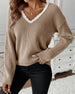 SPECIFICATIONS Category: Pullovers Style: Casual Material: Acrylic,Spandex,Polyester Neckline: V neck_V Pattern Type: Solid color Sleeve Type: Regular sleeve Sleeve Length: Long Sleeve Details: Pocket Fit Type: Regular Occasion: Daily Season: Fall,Winter Package Includes: 1 x Pullover SIZE TABLE Size Bust Length CM INCH CM INCH S ...