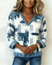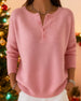 Long-Sleeved Button-Down V-Neck Sweatshirt