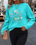 Long-Sleeved Crew Neck Christmas Tree Print Top