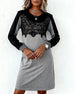 SPECIFICATIONS Style: Casual Material: Acrylic,Spandex,Polyester Dress Type: Shift dress Dress Length: Midi Neckline: High Neck Pattern Type: Solid Color Sleeve Type: Regular sleeve Sleeve Length: Long Sleeve Details: Lace Fit Type: Regular Season: Fall,Winter Occasion: Daily Package Includes: 1 x Dress SIZE TABLE Size Bust Leng...