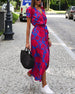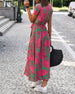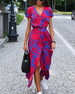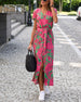 SPECIFICATIONS Style: Elegant Material: Cotton Blends Dress Type: A-Line Dress Length: Midi Neckline: V neck_V Pattern Type: Print Sleeve Type: Regular sleeve Sleeve Length: Short Sleeve Details: Lace Up, Slit Fit Type: Regular Season: Spring, Summer, Fall Occasion: Daily Package Includes: 1 x Dress SIZE TABLE Size Bust Len...