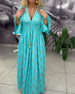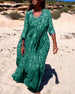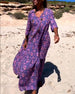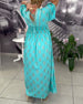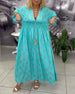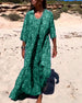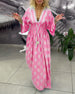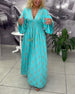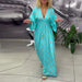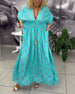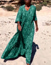 SPECIFICATIONS Style: Vacation Material: Cotton Blends Dress Type: Smock Dress Length: Maxi Neckline: V neck_V Pattern Type: Print Sleeve Type: Bat sleeve Sleeve Length: 3/4 Sleeve Details: Slit Fit Type: Regular Season: Spring,Summer,Fall Occasion: Vacation Package Includes: 1 x Dress SIZE TABLE Size Bust Length CM INCH CM INC...