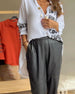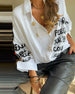 SPECIFICATIONS Top Type: Shirt Style: Casual Material: 5% Spandex, 95% Polyester Occasion: Daily Neckline: Lapel Pattern Type: Letter Sleeve Type: Dropped shoulder Sleeve Length: Long Sleeve Fit Type: Loose Season: Spring, Summer, Fall Details: Buttons Package Includes: 1 x Shirt SIZE TABLE Size Bust Front Length Back Length...