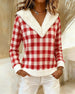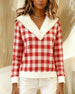 Long-Sleeved V-Neck Plaid Sweatshirt