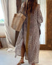 SPECIFICATIONS Style: Casual, Vacation Material: Cotton Blends Dress Type: Shift dress Dress Length: Maxi Neckline: V neck_V Pattern Type: Print Sleeve Type: Regular sleeve Sleeve Length: 3/4 Sleeve Fit Type: Loose Season: Spring, Summer, Fall Occasion: Daily, Vacation Package Includes: 1 x Dress SIZE TABLE Size Bust Length c...