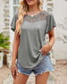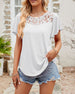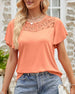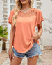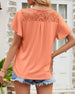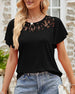 SPECIFICATIONS Top Type: Tops Style: Elegant Material: Cotton, Polyester Occasion: Daily Neckline: Round Neck Pattern Type: Solid Color Sleeve Type: Ruffle Sleeve Sleeve Length: Short Sleeve Fit Type: Regular Season: Spring, Summer, Fall Details: Patchwork Package Includes: 1 x Top SIZE TABLE Size Bust Length Sleeve L...