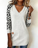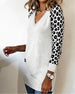 Mid-Length V-Neck Leopard Print Sweatshirt