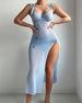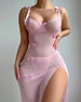 SPECIFICATIONS Style: Sexy Material: Cotton Blends Dress Type: Bodycon Dress Length: Maxi Neckline: V neck_V Pattern Type: Solid Color Sleeve Length: Sleeveless Details: High Opening,Bowknot Fit Type: Skinny Season: Spring,Summer Occasion: Daily Package Includes: 1 x Panties,1 x Dress SIZE TABLE Size Bust Length CM INCH CM INCH ...