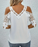 SPECIFICATIONS Top Type: Blouses Style: Casual Material: Cotton Blends Occasion: Daily Neckline: V neck_V Pattern Type: Solid Color Sleeve Type: Cold Shoulder Sleeve Length: Half Sleeve Fit Type: Regular Season: Spring,Summer Details: Hollow Out Package Includes: 1 x Blouse SIZE TABLE Size Bust Length CM INCH CM INCH S 97 38.19 ...