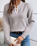 Size Chart DELICATE LACE, TIMELESS SWEATER: YOUR STYLE IS EFFORTLESSLY RENEWED! WHY YOU'LL LOVE IT! Elegant lace details for a feminine touch: The delicate lace trim around the neckline elevates this sweater from a simple knit to a statement piece. It adds a graceful charm that makes your outfit stand out effortlessly. Perfect for those wh...